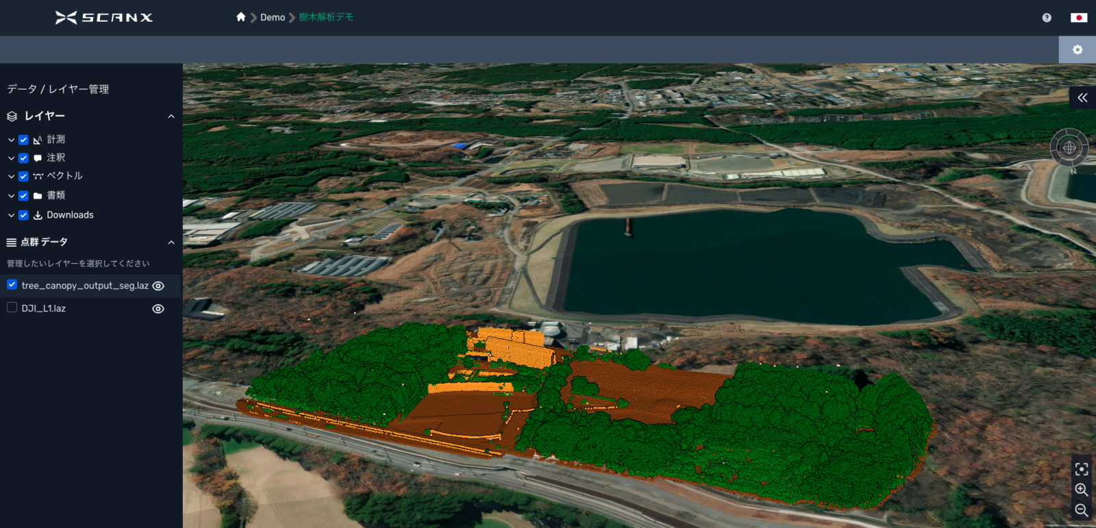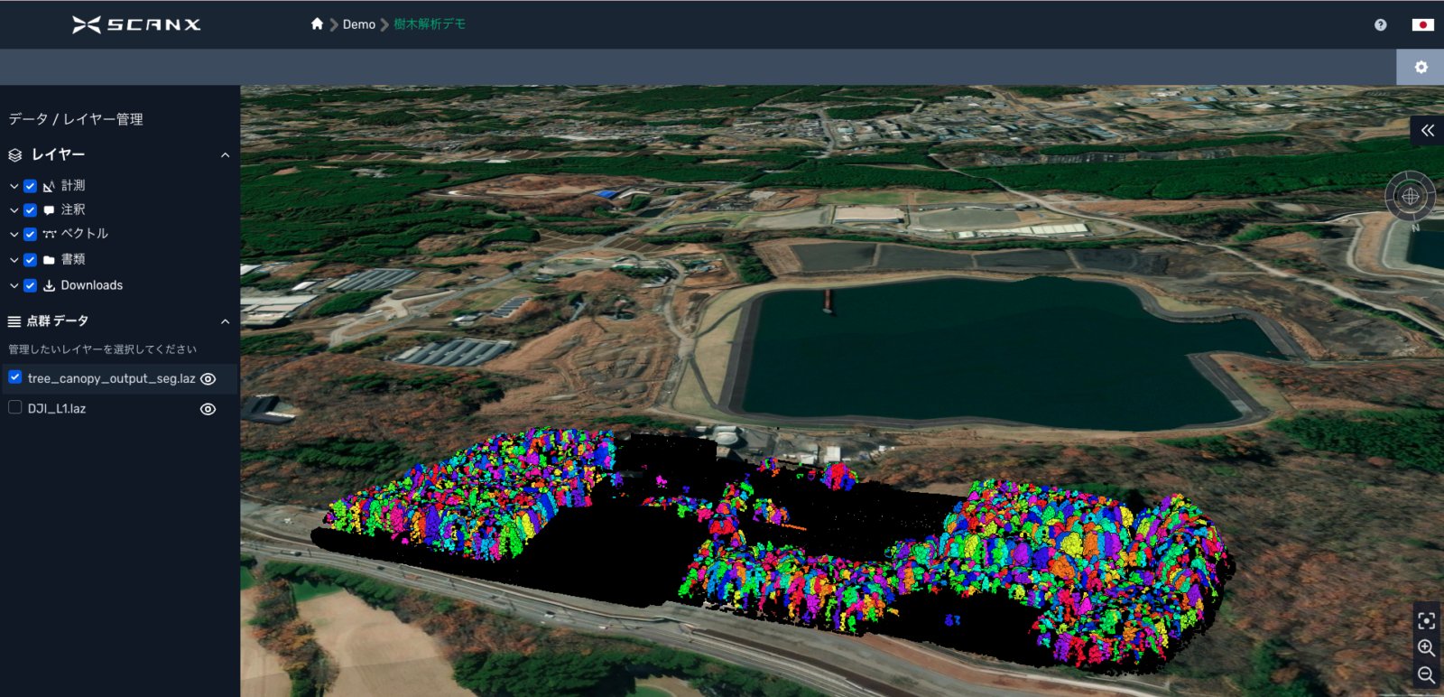 レーザースキャナー(LiDAR)など各種機器で取得した3D点群データをオンラインで高精度なクラス分類・解析が出来るソフト「スキャン・エックス(ScanX)」を提供するローカスブルー株式会社は、 2022年10月27日(木)よりScanXに新機能『樹木解析』を追加します。