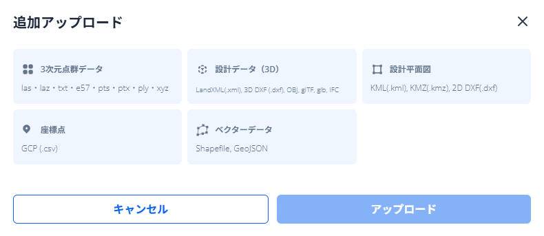 これまでScanXでは、3D設計図のアップロードは、LandXML、DXF、OBJ、glTF に対応していました。